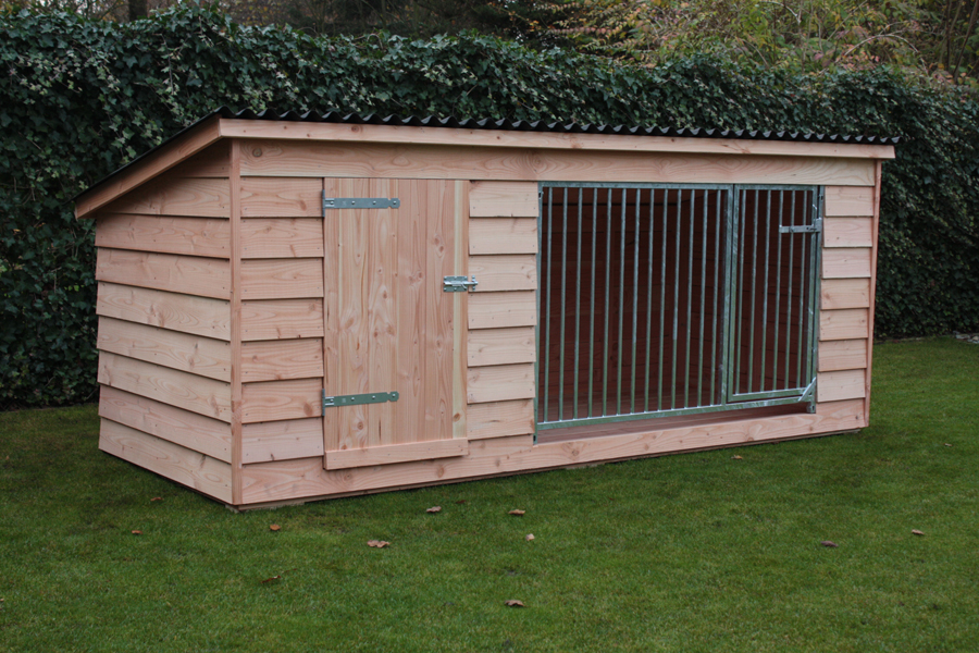 De hondenkennel Bruno is naar wens volledig gemonteerd, of als bouwpakket leverbaar.