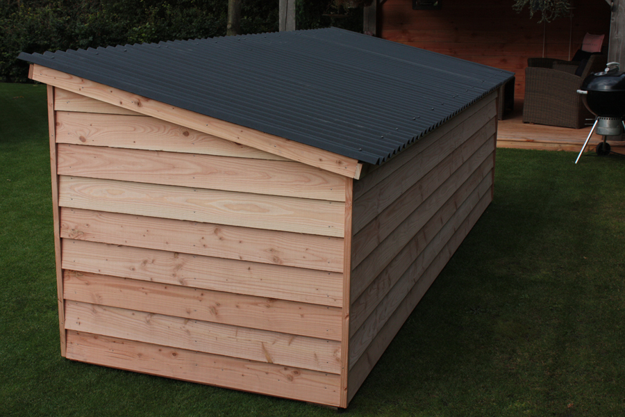EcoWoods beschikt over een eigen houtzagerij waar de robuuste hondenkennel Bruno in elke gewenste maat gemaakt kan worden.