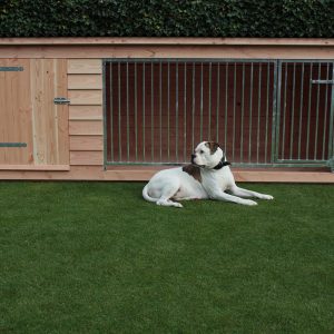 De Douglas robuuste hondenkennel hooiberg kan als geheel worden geleverd of als bouwpakket.