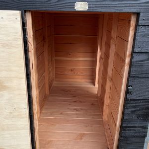 De hondenkennel hooiberg van douglas hout kan door de weersomstandigheden wat vergrijzen. Voor kleurbehoud adviseren we om Biopin olie te gebruiken.