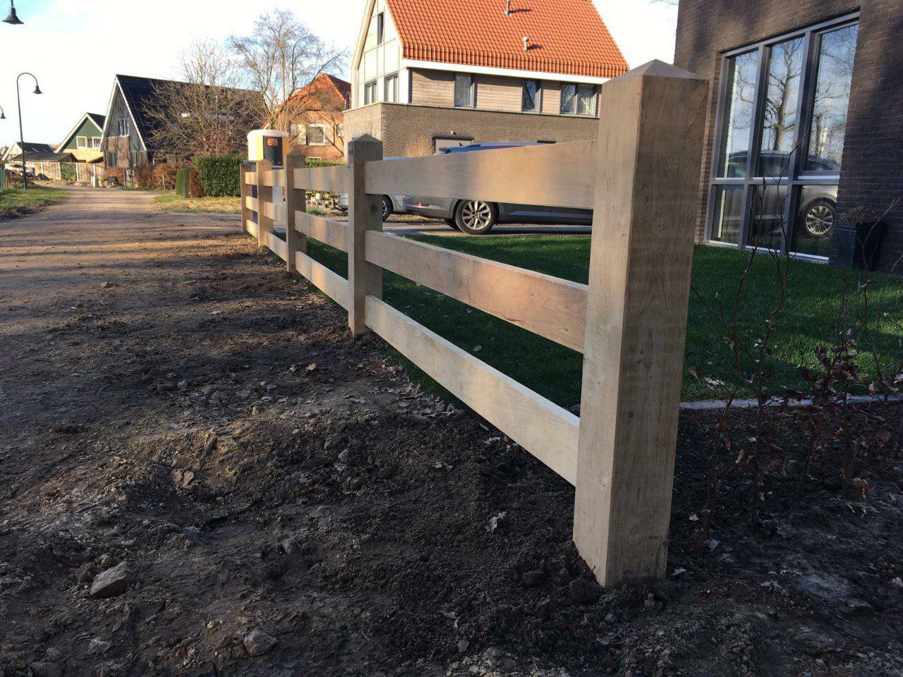 Het eiken is fijnbezaagd. De palen zijn voorzien van een diamantkop en uitgefreesde gaten.