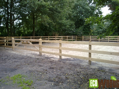 - Omheining met palen van 7,5cm x 15cm.
